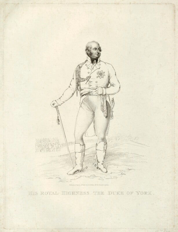 Famed as the 'The Grand Old Duke of York' Frederick was the second son of George III. He was Commander-in-Chief of the British Army, between 1798 and 1809. Unsuccessful in the field during the French Revolutionary and Napoleonic Wars, he is better remembered for putting down corruption in the administration of the army. However, in 1809, he was dismissed from office after revelations that he and his mistress Mary Anne Clarke had been selling army commissions.