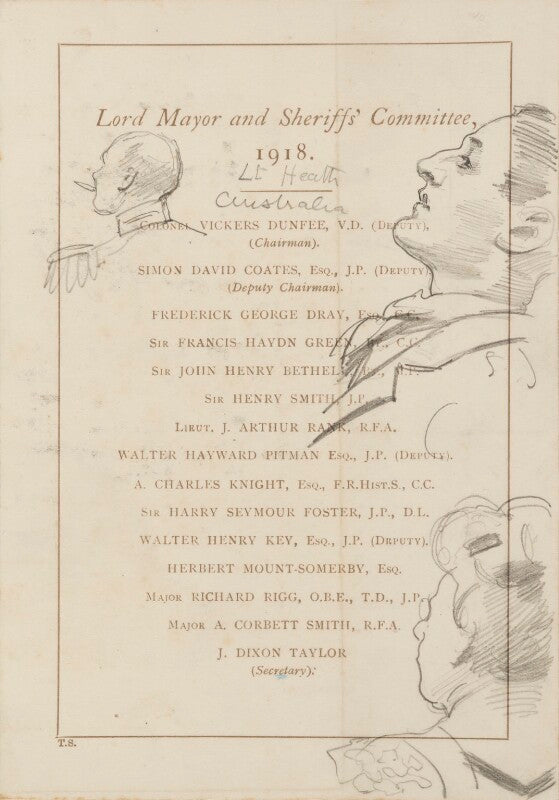This portrait is of the diners listening to speeches, which included the historic announcement from Lloyd George that the Kaiser had abdicated.