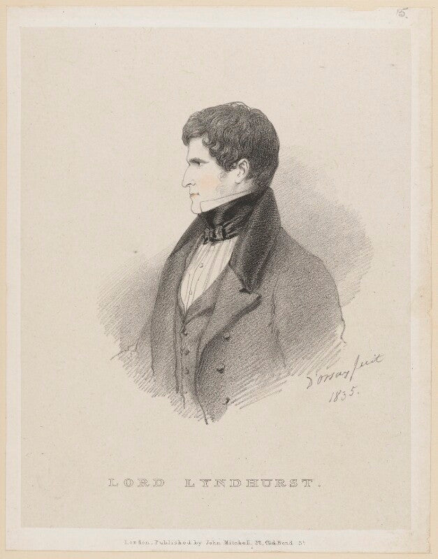 A barrister, he came to prominence in 1812 with his successful defence of one of the leading Luddites, John Ingham, charged with the capital offences of rioting and destroying machinery. As an MP from 1818 he held many influential positions including Lord Chancellor (three times) and Chief Baron of the Exchequer. He served, unusually, under both Tory and Whig governments but was loyal to the Tory party. It was said of him that his 'path to power was through the wreck of all political consistency'.... more
