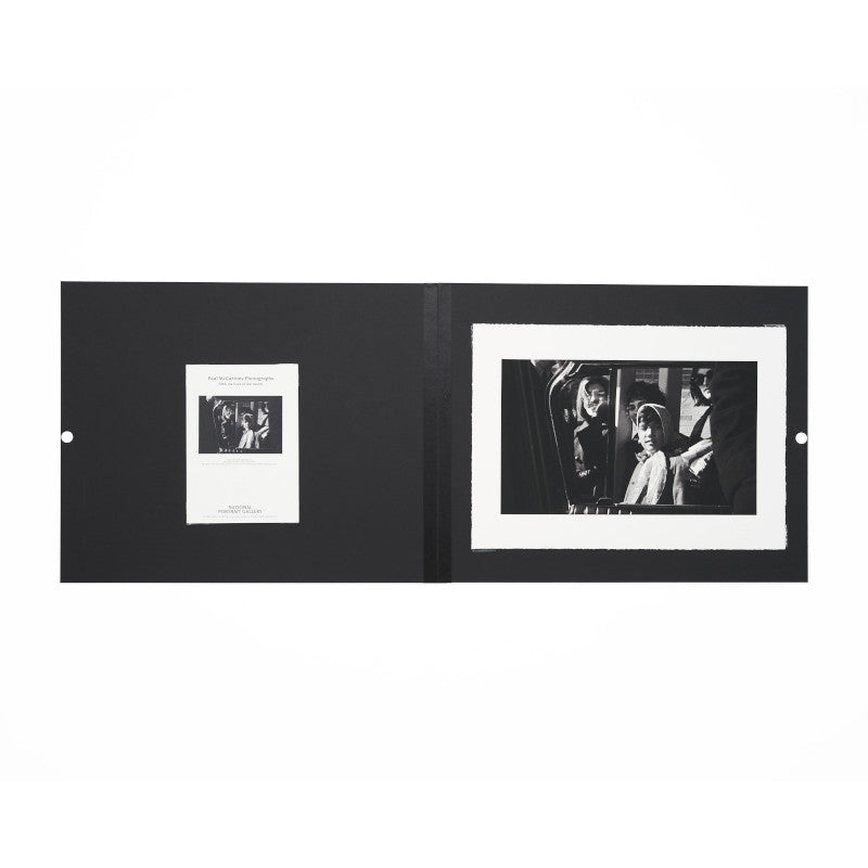 A single folio print to accompany the National Portrait Gallery exhibition Paul McCartney, Photographs 1963–64: Eyes of the Storm. Featuring the photograph Unknown Girl, Washington by Paul McCartney, February 1964, embossed with the NPG logo. The print comes housed inside a presentation folio printed with the exhibition name.