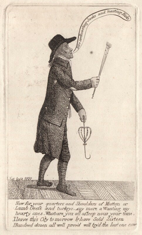 This image is in the long tradition of prints of street sellers and their 'cries', that had been popular since the early seventeenth century.