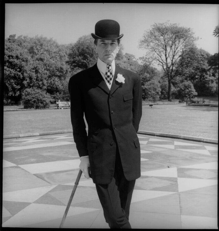 Photographed for the Sunday Pictorial in front of the Albert Memorial in Kensington, London. A colourful personality, Roger was known for his lavish and outrageous parties, including his New Year's Eve 'Flash' party in 1952, which Goodman attended and photographed.