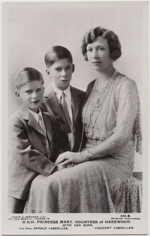 Hon. Gerald David Lascelles; George Lascelles, 7th Earl of Harewood; Princess Mary, Countess of Harewood NPG x17404