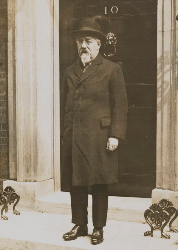 Political and social reformer; Labour MP for Seaham (1922-9) and President of the Board of Trade (1924); with his wife Beatrice founded the London School of Economics and Political Science (1895) and the New Statesman (1913); shown signalling 'the inevitability of gradualness' marking the advance of socialism.